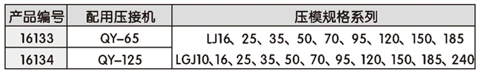 • 壓模規格指適用導線(xiàn)型號。